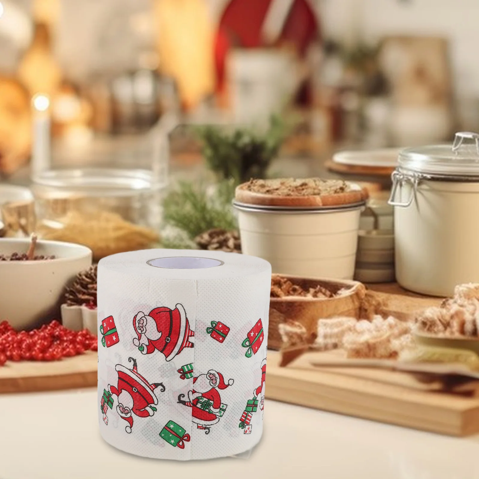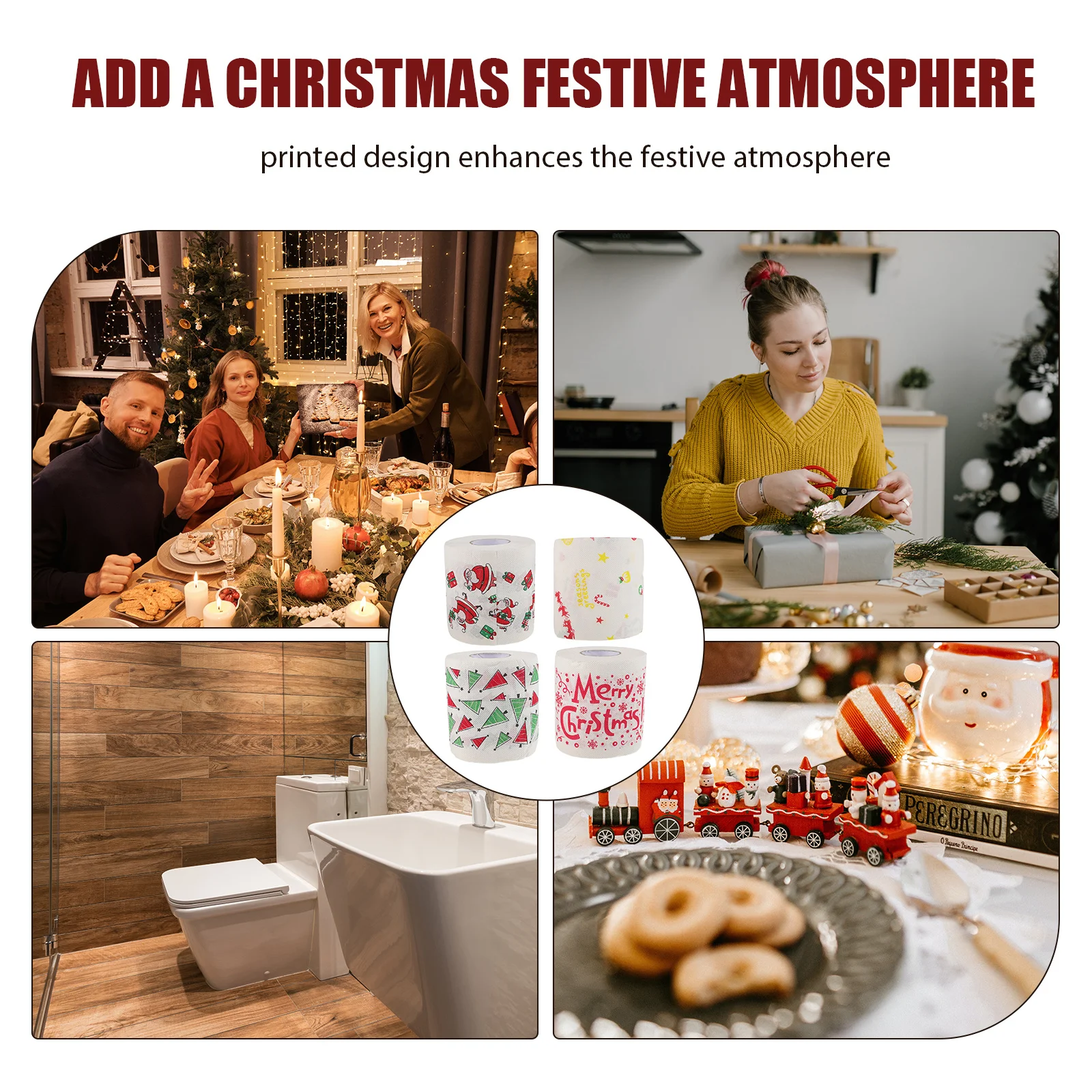 4 Rolls Christmas Toilet Paper Double Layer Thick Printed Santa Claus Merry Christmas Funny Paper Holiday Party Bathroom