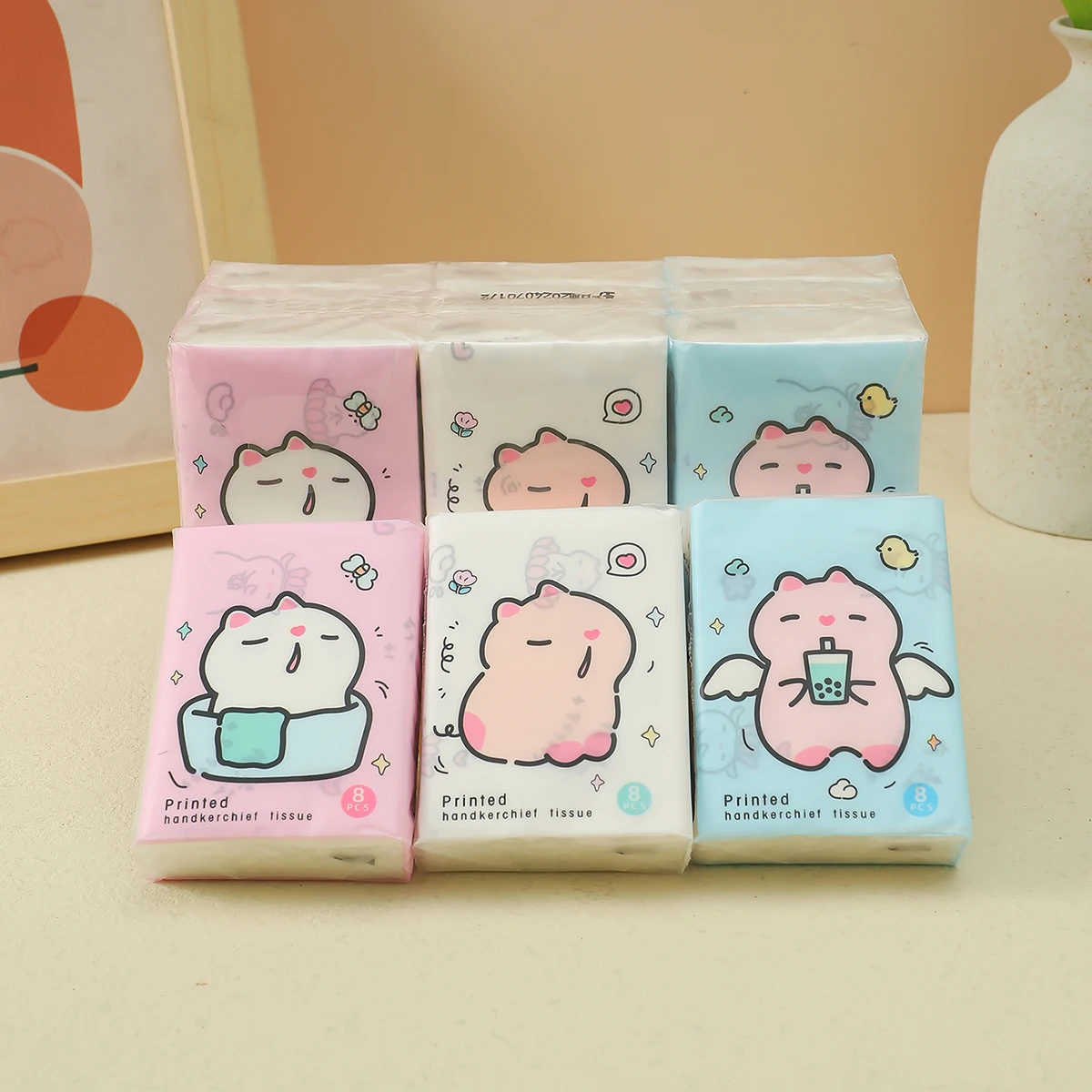 9pcs/pack Fashionable Lucky Cat Handkerchief Paper Student Portable Small Pack Cartoon Printed Hand Tissue For Daily Cleaning