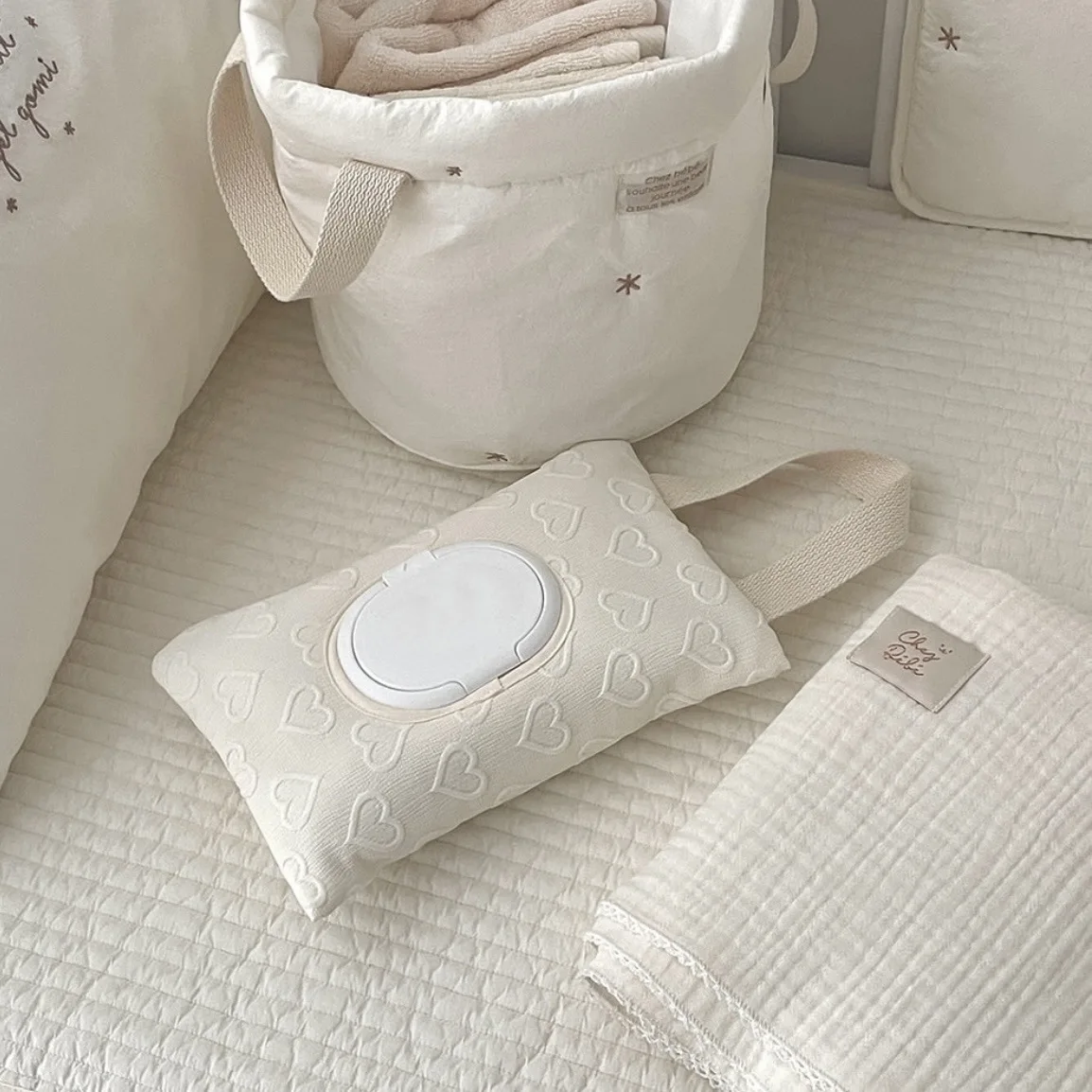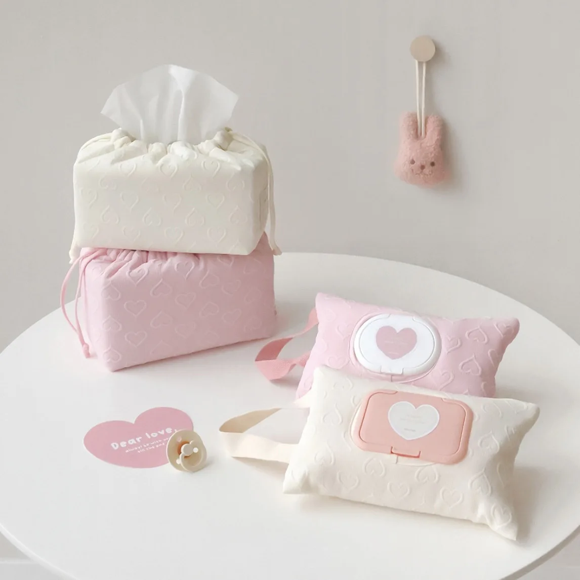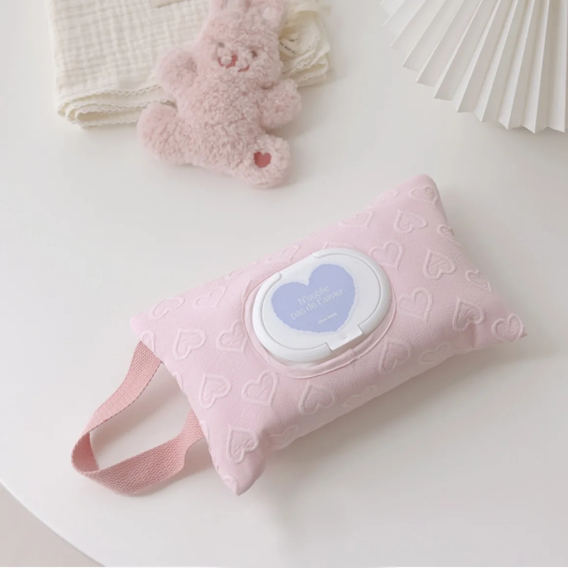 Baby Stroller Heart Wet Wipes Case Extraction Tissue Box Travel Car Portable Handheld Storage Bag Newborn Hanging Bag for Cart