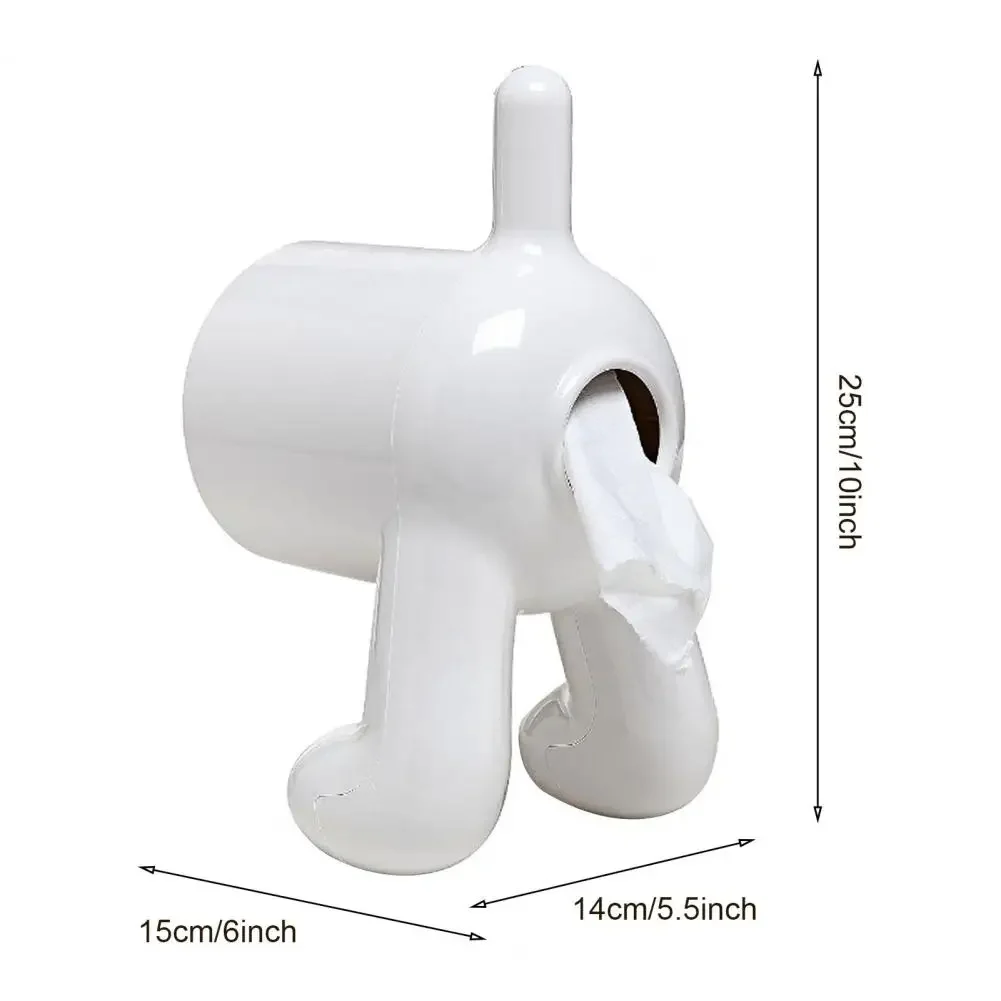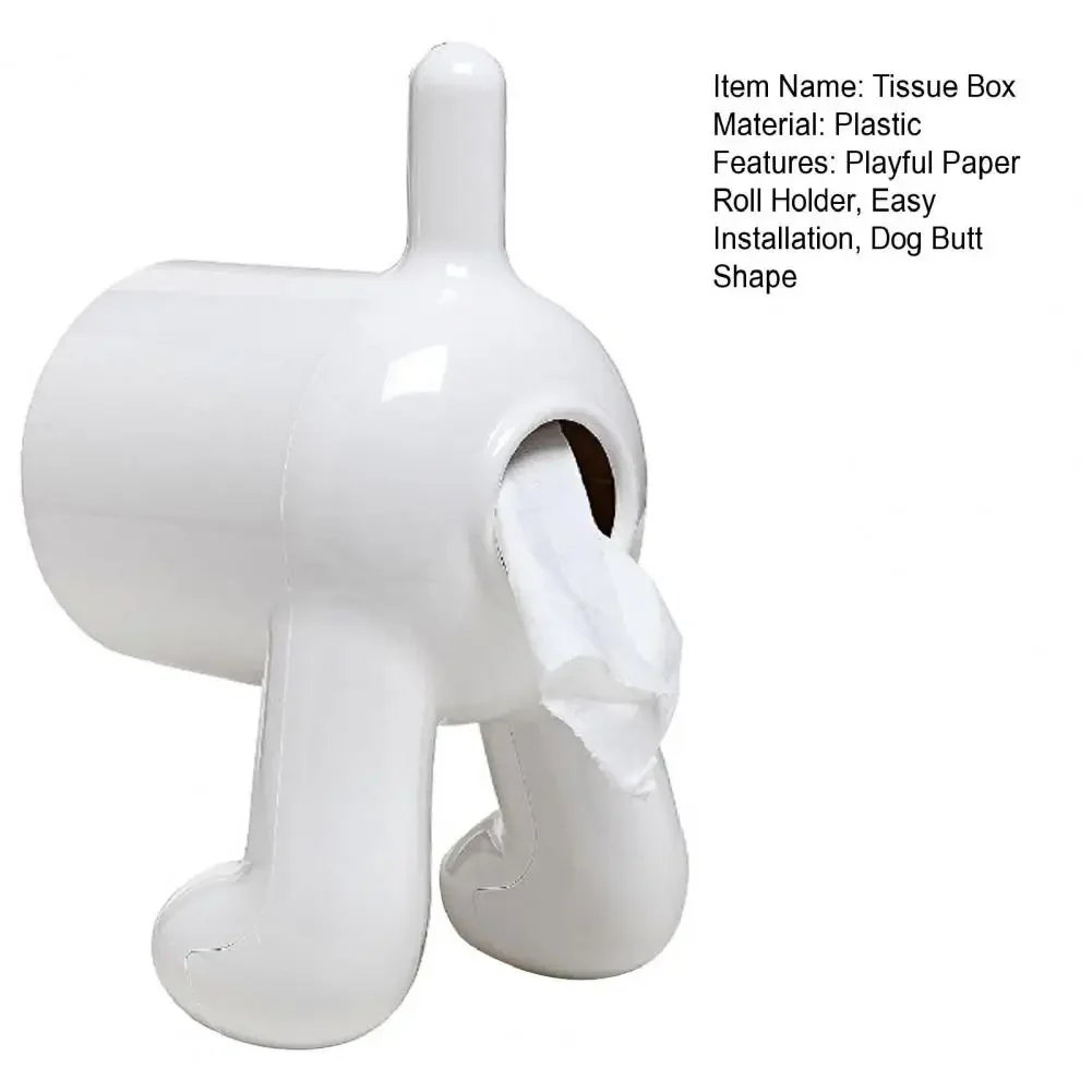 Add a touch of humor to your bathroom decor with this durable plastic tissue box shaped like a dog's butt. Built to last, it ensures long-term daily use without fading or cracking. Not just a gag gift, it's a practical way to store toilet paper rolls. Easy to install on the wall or countertop, this fun dispenser is sure to bring smiles and laughter to your guests.