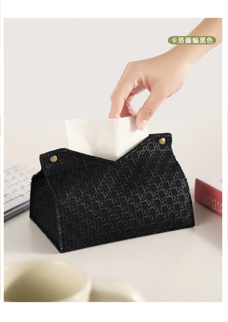 Luxury Woven Paper Towel Box Home Creative Living Room Storage Car Simple Solid Color Tissue Box Dining Room Removable Tissue