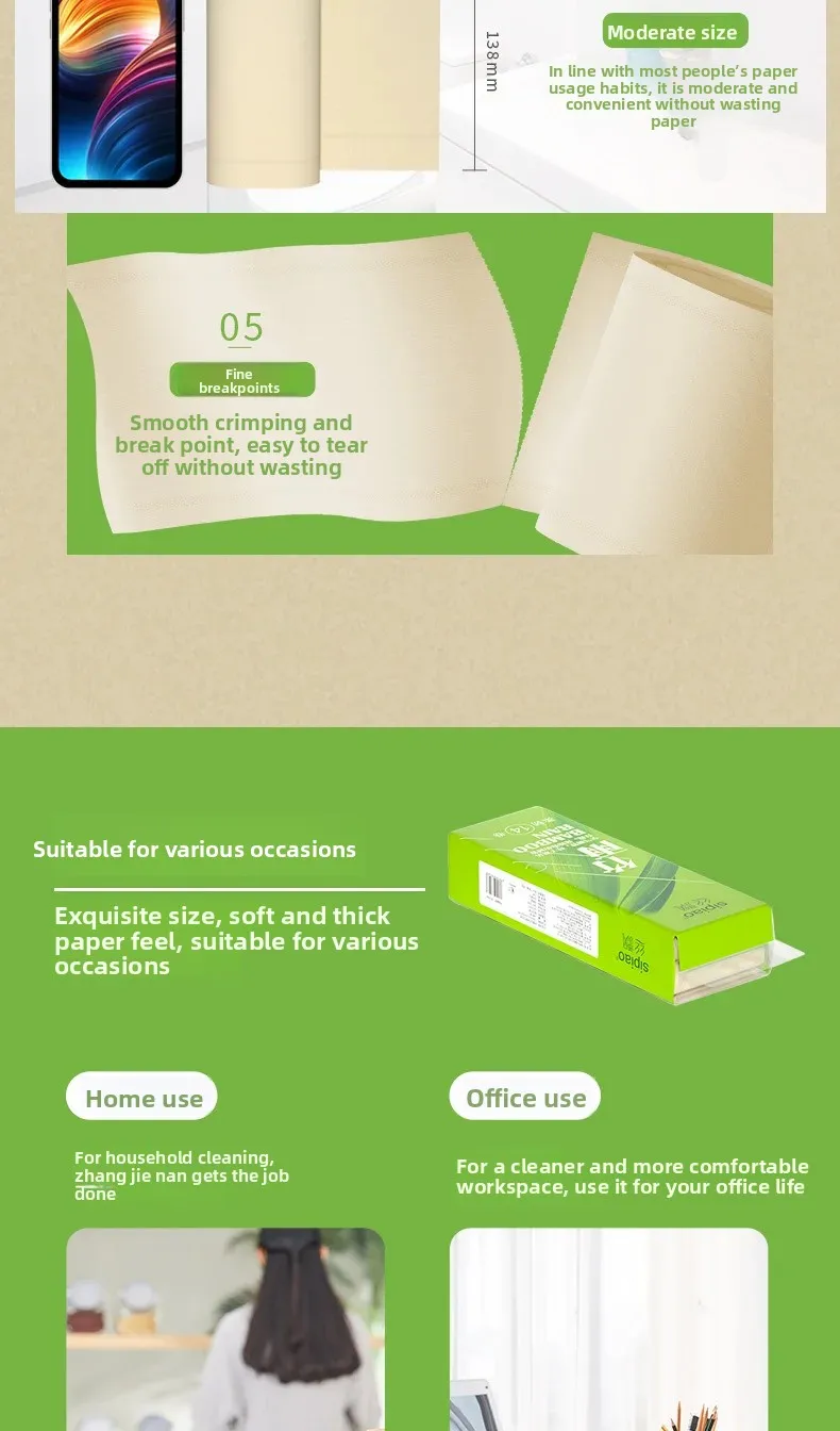 • Natural Material : Crafted from silk floating bamboo, this toilet paper offers a natural and eco-friendly option for your bathroom needs.