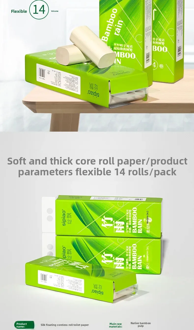 Upgraded Bamboo Rain Silk Drifting 14 Rolls 830g Natural Color Toilet Paper Household Handkerchiefs Bathroom Tissue